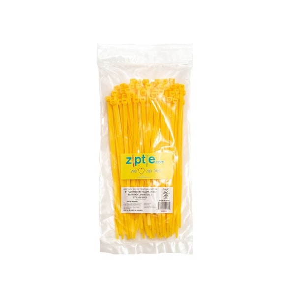 Cable Tie, 8 in L, 2 in Max Bundle Dia., Yellow, Nylon, 75 lb Strength, 100 PK