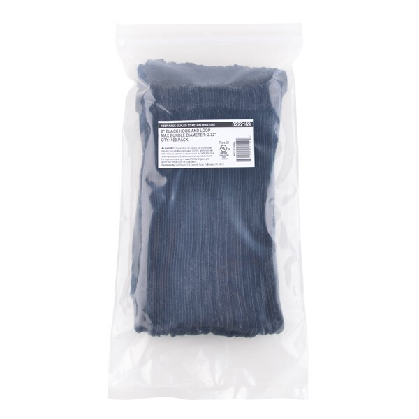 Cable Tie, 8 in L, 2.3 in Max Bundle Dia., Black, 6 lbs Strength, 100 PK
