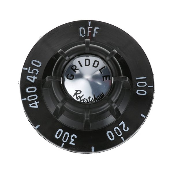 Black T'Stat Knob "Griddle" For "U" Series T'Stat;[ 2-1/2" Dia ] [ Off-100-450] [Mount .24" ] [Flat Up ];Garland;Grill Series: 40/50~; G24.;Southbend;Grill Series: 300 (W/Type U T-Stat).