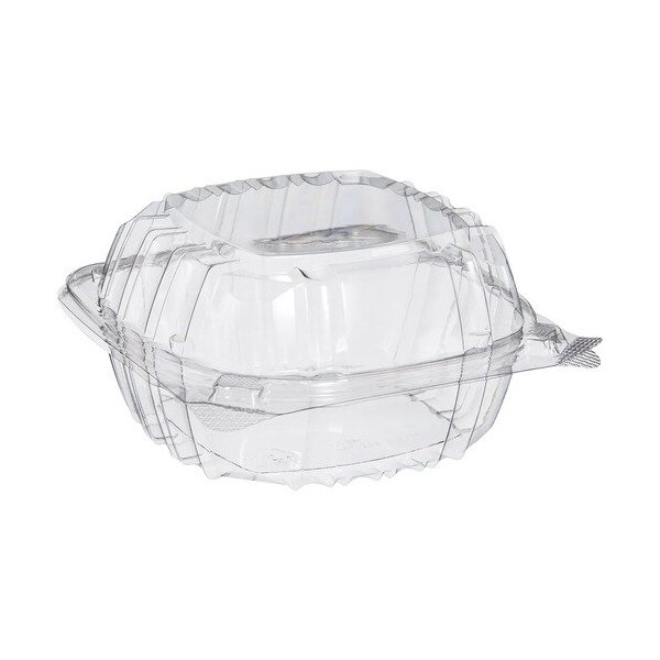 Lock in freshness with ClearSeal's exclusive perimeter seal designed to maximize product freshness and reduce leaks. Dual bar-locks on the ClearSeal 6'' Sandwich Hinged Lid Container provide a snap-tight secure closure while easily accessible gripper tabs simplify opening. OPS Oriented Polystyrene delivers crystal clarity for superior product visibility as well as being flexible, yet durable, to maximize strength and reliability. Stacking platform increases stability for delivery and display. Chamfered corners provide extra strength at container corners. Curved sidewall offers reinforced durability in handling. Label window offers ideal label or tamper-evident seal placement. Capacity is 19.8 fluid oz.