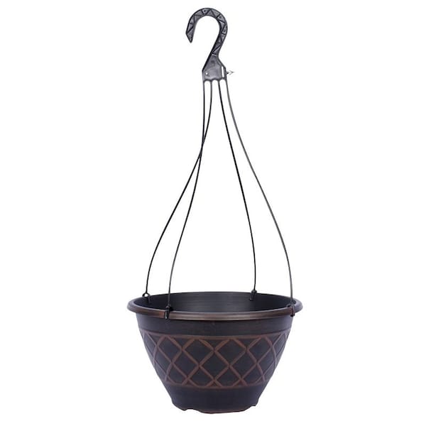 Southern Patio Hanging Basket Planter, Brown, Resin, 12 in H