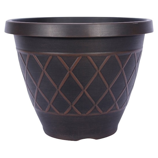 Southern Patio Planter, Round, Brown, Resin, 13 in H