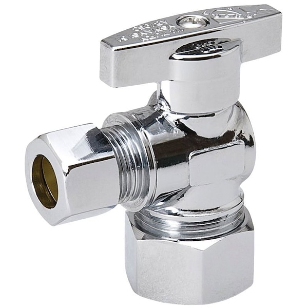 Southland Stop Valve, 5/8 x 3/8 in Connection, Compression Connection, Number of Ports/Ways: 2, 125 psi, Temperature Rating: 180 deg F, Media: Water, Body Material: Brass, Chrome