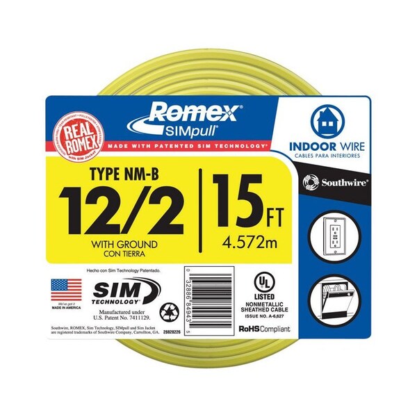 15 ft. 12/2 Solid Romex Type NM-B WG Non-Metallic Wire