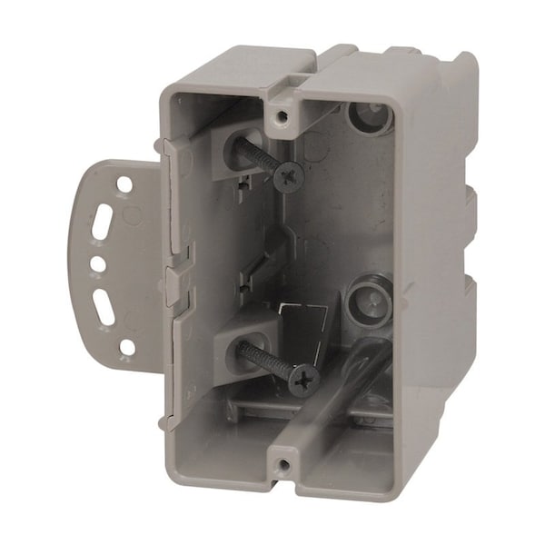 Romex Multi-Mount Outlet Box, Conduit Cable Entry, 4 Knockouts, 1/2 in Knockout, 1 Gangs, Rectangular Shape, 21 cu-in, Dimensions: 3.82 in H x 2.4 in W x 3.5 in D, Polycarbonate, Gray, Wall Mounting