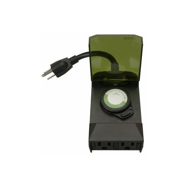Woods, 2 Outlet, Outdoor 24 Hour Mechanical Outlet Programmable Timer, Controls Up To 12 HP, Settings Repeat Daily Up To 24 Settings, Includes Override Switch, Great For Pond Pumps Holiday Lighting, Never Lose Pins Cannot Be Removed Or Lost