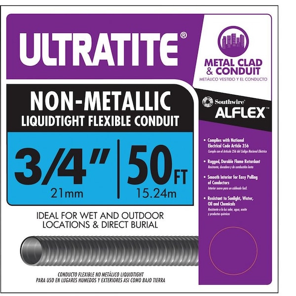 Fitting Type: Threaded *Length: 50 *Material: Thermoplastic *Maximum Voltage: 600 *Packaging Type: *Product Type: Flexible Electrical Conduit *Schedule Type Number: *Sub Brand: *UL Listed: Yes *Brand Name: Southwire *CSA Listed: Yes *Color: Gray *Condu