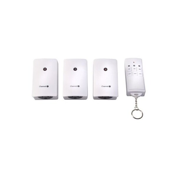 Woods, 3 Outlet, White, Indoor, Plug In Wireless Remote Control Timer, 3 Receivers Each With A Space Saving Grounded Outlet, Operates Up To 3 Different Home Appliances From Across The Room Or Garage Using 1 Remote Control, Works Up To A Distance Of 60', Compatible With Compact Fluorescent Lighting LED Bulbs, Cul Certified For Quality Assurance, 1 Transmitter 12V Type A23 Battery, Ratings 125V, 60 HZ, 13A 1625W Resistive 8A 1000W Tungsten, Controls Up To 13 HP