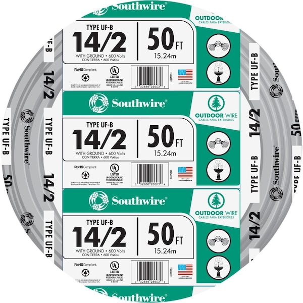 50 Ft. 14 AWG 2-Conductor UFW/G Electrical Wire