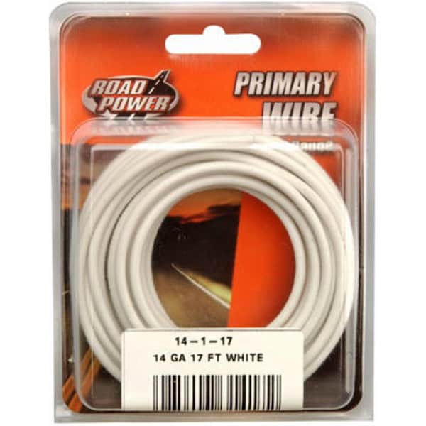 Features 17 ft. Primary Wire. Durable PVC outer-jacket resists water, oil, and chemicals. Full gauge stranded copper for higher current-carrying capacity. Color - White. 14 Gauge. Dimension - 3.5 L x 1.5 W x 4 H x in. Item Weight - 0.32 lbs.
