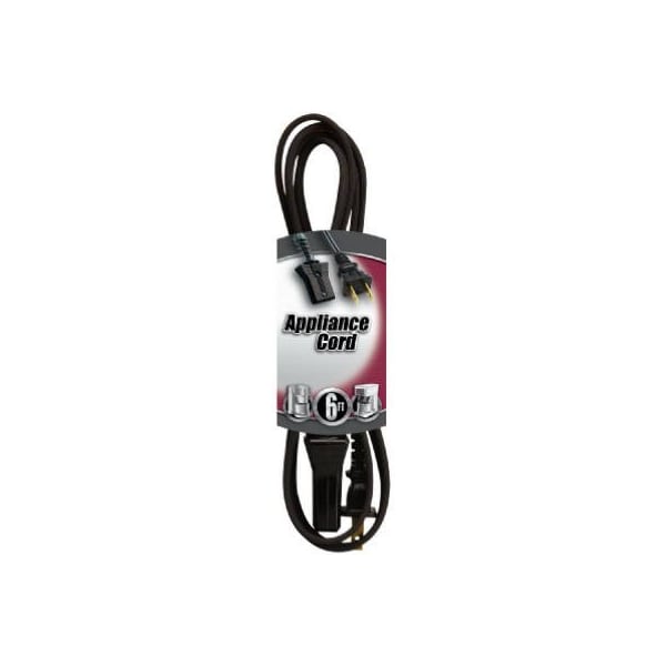 6', 182 HPN, Black Miniature Plug Appliance Cord, 13A, 125V, 1250W, For Use With Appliances Requiring 1116 Spacing, UL Listed
