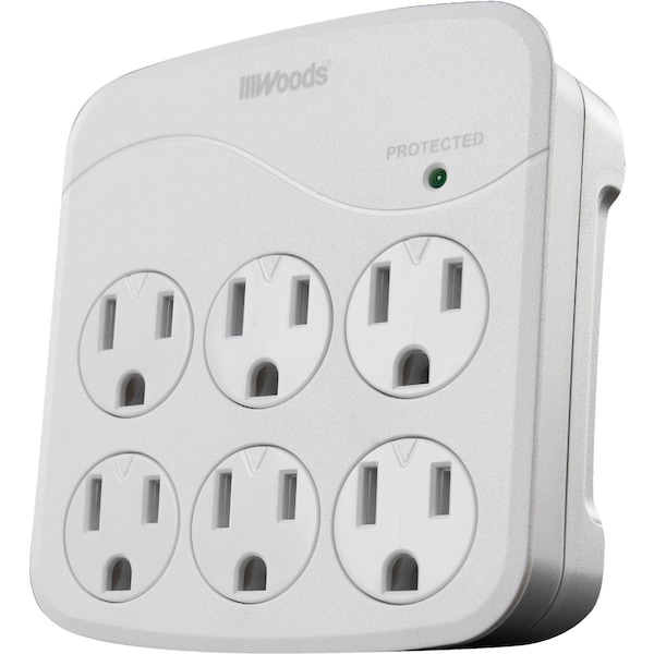 6-outlet surge tap featuring a phone cradle safety covers wire wrap and EZ-Pull. Not for use with GFCI (ground fault circuit interrupter) receptacles or receptacles with indicator lights or controls. 1400 Joules.