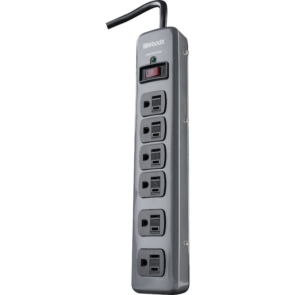 6-Outlet 900J Dark Gray Surge Protector Strip with 3 Ft. Cord