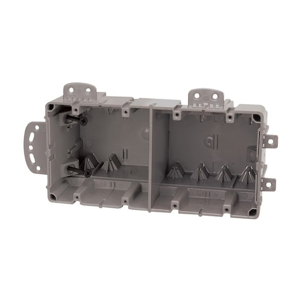 Romex Multi-Mount Outlet Box, Conduit Cable Entry, 2 Knockouts, 1/2 in Knockout, 4 Gangs, Rectangular Shape, 67 cu-in, Dimensions: 3.5 in H x 4.3 in W x 9.6 in D, Polycarbonate, Gray, Wall Mounting