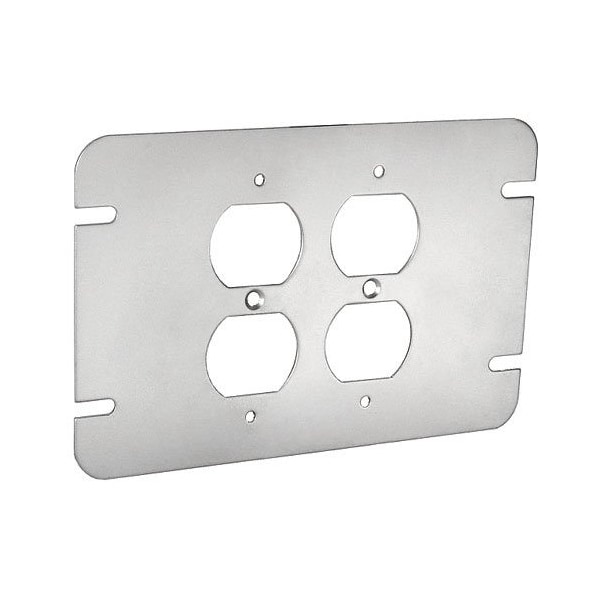 Box Cover, 2 Gang, Galvanized Steel, Duplex Receptacle Cover Type
