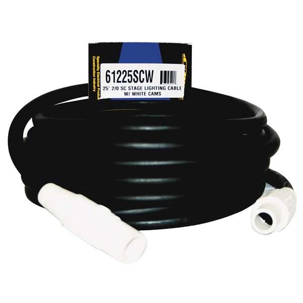 Cam Lock Power Cable, Max. Amps 200 A, Voltage Rating 600V AC, Connector End CL20FW, Plug End CL20MW, Number of Poles 1, Number of Wires 1, Wire Size 2/0 AWG, Color White, Cord Length 25 ft, For Use With Distribution Cart, Standards CUL, UL Listed
