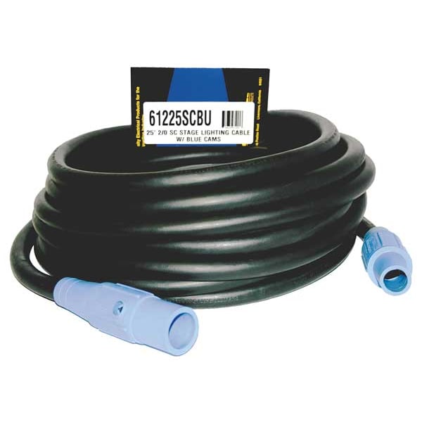 Cam Lock Power Cable, Max. Amps 200 A, Voltage Rating 600V AC, Connector End CL20FBU, Plug End CL20MBU, Number of Poles 1, Number of Wires 1, Wire Size 2/0 AWG, Color Blue, Cord Length 25 ft, For Use With Distribution Cart, Standards CUL, UL Listed