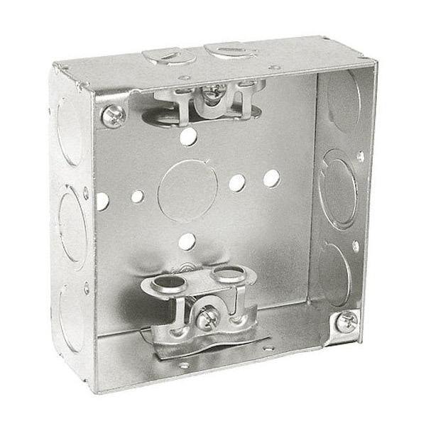 Electrical Box, 21 cu in, Square Box Type, 4 Gangs, Steel, Square Shape