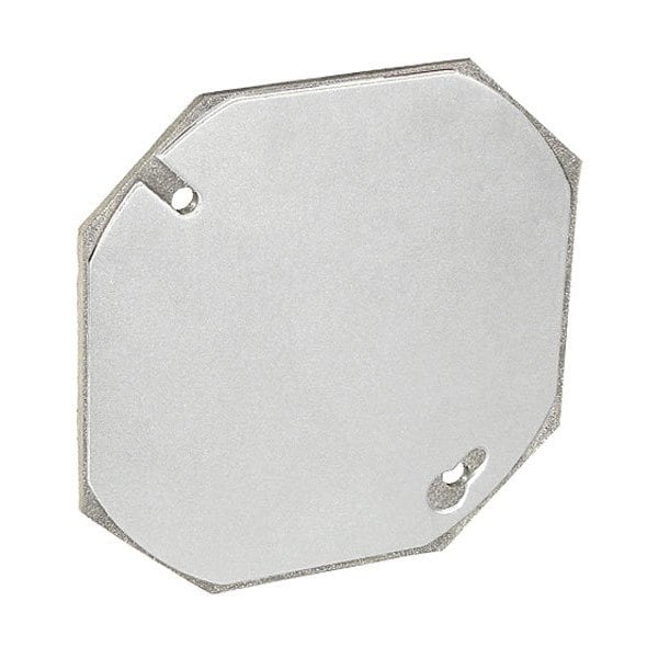 Electrical Box Cover, Octagon, Galvanized Steel, Flat Cover