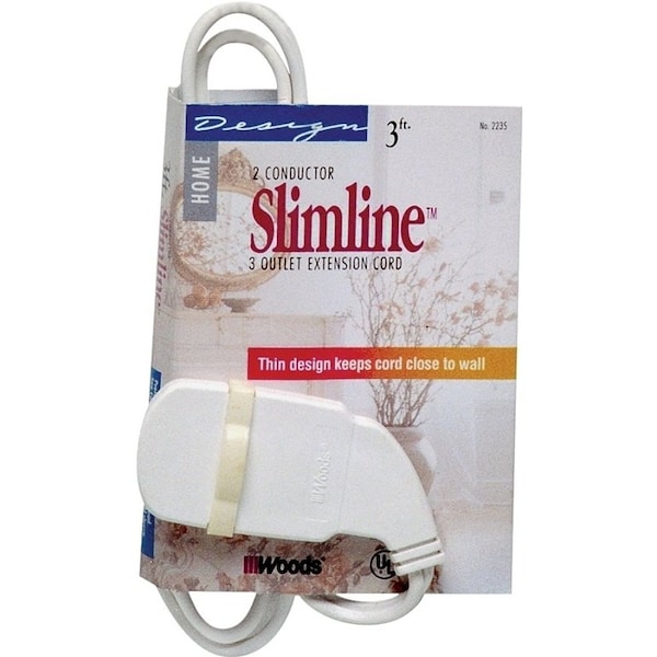 Indoor only, household cord Thin male plug keeps cord close to wall Plug does not block other outlets 13 A125 V UL Listed Sleeved
