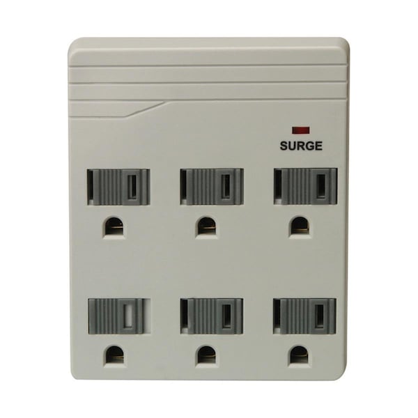 Features Front entry surge protector with wall adapter 750 Joules of protection, 6-outlet, wall tap/adapter plugs directly into the outlet Ideal solution for phone / fax / DSL - Or any outlet that needs surge protection Built-in EMI / RFI noise filtration - Prevents circuit interference/degradation Sliding safety covers protects users from accidental contact and keeps dust from unused outlets Specifications Number of Outlets: 6 outlets Color: Gray Grounded: Yes Maximum Amperage: 15 amps Maximum Wattage: 1875W UL Listed: Yes Indoor and Outdoor: Indoor Voltage: 125V Length: 1.89 in Width: 3.27 in Height: 4.02in