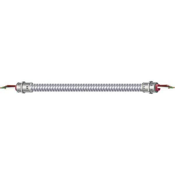 Metal Clad Whip, Trade Designation MC, Wire Size 14 AWG, Number of Conductors 3, Wire Color Black/Green/White, Jacket Color Silver, Length 6 ft, Fittings 1/2 in Lock Nut, Conductor Design Solid, Jacket Material Galvanized Steel, Voltage 600 V, Includes 6 in Wire Leads