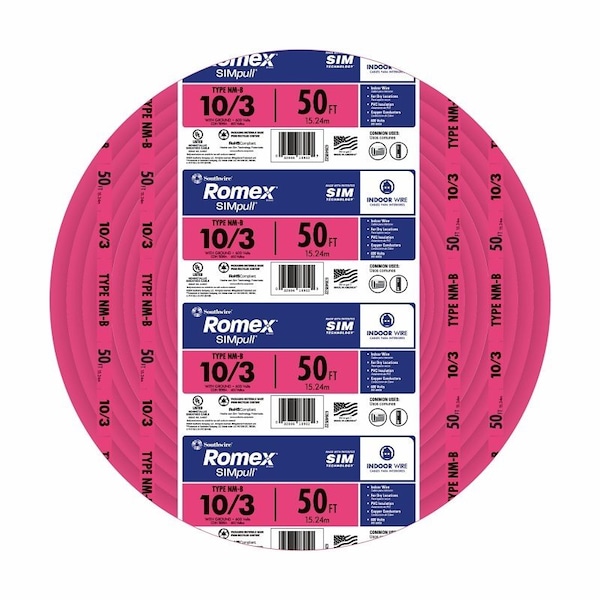 NM-B Non-Metallic Building Cable, Copper, 10 AWG, 3C, Orange, Solid, 50 ft