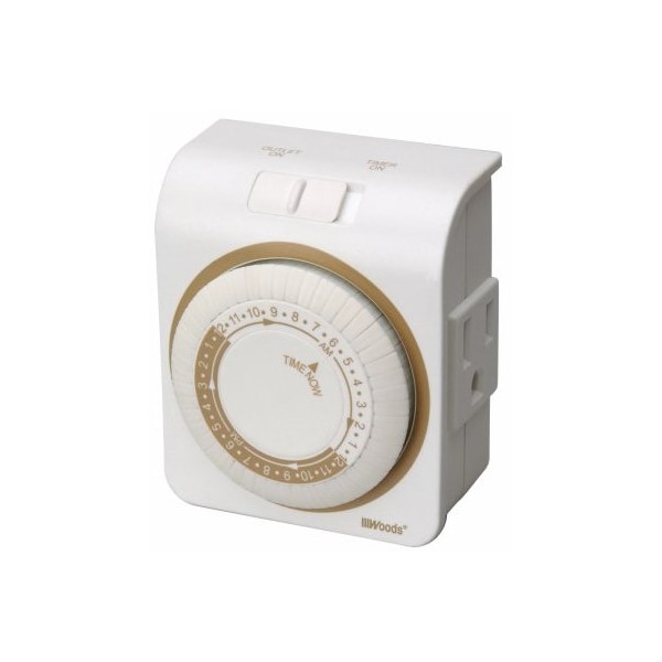 TruGuard, Indoor, Heavy Duty, 24 Hour Mechanical Timer, Grounded 3 Prong Plug In, Daily 24 Hour, Programmable In 30 Minute Intervals, Maximum 48 Individual OnOff Settings Per Day, Manual Override OnOff Switch, 1 Grounded 3 Prong Outlet, CFL Ready, 125V, 60 Hz, 15A, 1250W Tungsten, CSA Certified