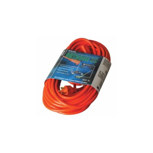 Vinyl Extension Cord, 50 ft, 1 Outlet, Orange