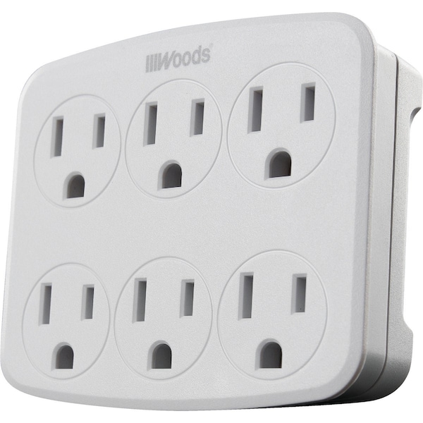6-outlet wall tap adapter. Ideal to expand electrical options while adding user friendly features like a phone cradle wire wrap and EZ-Up design. Not for use with GFCI (ground fault circuit interrupter) receptacles or receptacles with indicator lights or controls.