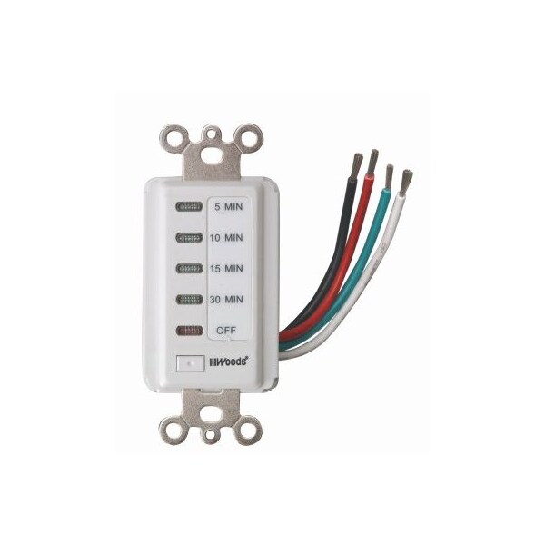White,15A, 1800W, Indoor, In Wall 30 Minute Digital Countdown Timer, 305, 105 Minute Preset Timer Switch, Can Automatically Turn Off Bathroom Fans, Lights, Comes With 5 Settings 5 Minute, 10 Minute, 15 Minute, 30 Minute Off, Easily Fits Decorator Switch Plate, Single Or MultiGang, Compatible With Compact Fluorescent Bulbs, Rated At 120V 60 HZ 15A, 1875W Resistive 8A, 120V, 1000W Tungsten 120V, 8A, 1000V Ballast