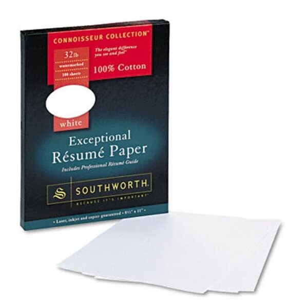 100 percent cotton fiber—perfect for any documents where prestige is the look and feel desired. Strong and durable to withstand years of average wear and tear. Watermarked and date-coded. Laser, inkjet and copier guaranteed. For a first rate résumé. Includes a résumé writing guide. Paper Color(s): White; Sheet Size: 8 1/2 x 11; Paper Weight: 32 lbs.; Paper Finish: N/A.