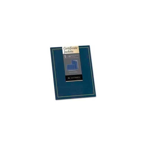 Southworth certificate jackets, 9-1/2" x 12", navy blue, 5/pack certificate jackets complement southworth parchment paper certificates. Exceptional heavyweight cover stock in a classic navy blue with a gold foil border conveys the significance for the award-winners. Use with preprinted or foil-enhanced certificate paper. Each jacket is made of 80 lb. Stock with a felt finish. larger quantity quotes available. Please call 1-888-978-7759. this product arrives to most customers in 2-3 business days.