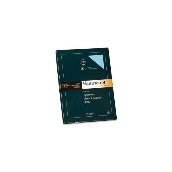 Southworth manscript cover, 12-1/2" x 9", blue, 100 sheets/pack manuscript covers protect legal briefs, scripts or similarly shared documents from wear and tear. 25 percent cotton fiber provides heavyweight protection. Tops are scored, and corners are clipped for folding and binding. Each 30 lb. Manuscript cover features a watermark, smooth finish and an acid-free, lignin-free construction. Manuscript covers also contain a high percentage of recycled material. this product arrives to most customers in 2-3 business days.
