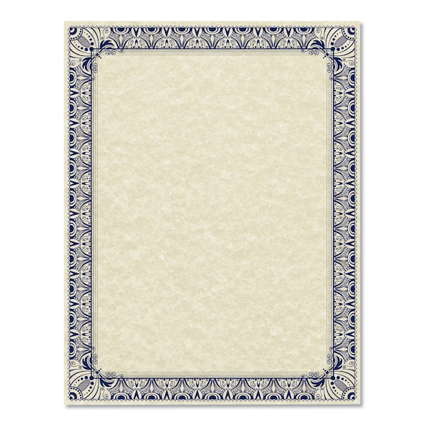 Southworth® Parchment Certificates, Retro, 8 1/2 x 11, Ivory w/ Blue & Silver-Foil Border, 50/Pack