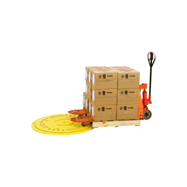 Southworth pallet pal disc turntable & skid carousel turntable disc rotates pallets and skids 360 to reduce muscle strain. premium disc turntable increases productivity and reduces harmful operator reach during pallet loading and unloading operations. Low profile 7/8" height fits under hand pallet jacks. Durable steel carousel does not require lagging to the floor allowing it to be used throughout your facility, and is ideal for stretch-wrap operations. Precision anti-friction ball bearings provide smooth movement. Turntable has a scratch-resistant safety yellow enamel finish.