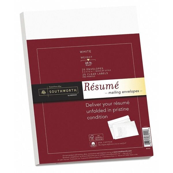 Resume Envelopes,White,9x12,PK25, Package Quantity 25