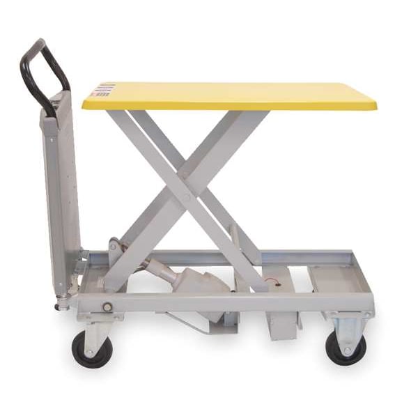 Powered, Lift Mechanism Linear Actuator, Lift Control Push Button, Load Capacity 330 lb, Platform Material Steel, Platform Length 36 in, Platform Width 24 in, Overall Length 42 in, Overall Width 24 in, Overall Height 37 1/2 in, Minimum Lifting Height 14 3/4 in, Maximum Lifting Height 33 1/4 in, Scissor Type Single, Wheel Configuration (2) Swivel , (2) Rigid with Floor Lock, Brake Type Floor Lock, Platform LxW 36 in x 24 in