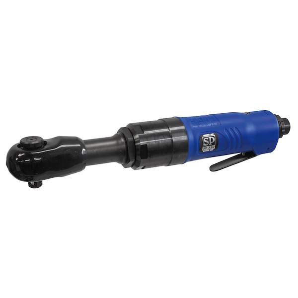 SP Air Corporation SP-7730 model is a 3/8-inch reaction free high-speed impact ratchet wrench. The unit is a reaction free ratchet wrench, so the vibration shock pain from normal air ratchets is not present. Unit specifications include a drive size of 3/8-inch and bolt capacity of 3/8-inch, a working torque range of 100 ft-lbs., a free speed of 450 RPM, a vibration level of 5.8 m/s, and a sound level of 88.2 dB