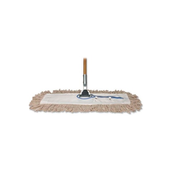 Genuine joe dust mop, w/ handle, 24" frame, 60" handle, gjo54101 complete mop with frame, handle and dust mop delivers maneuverability. 360-degree swivel frame swings at all angles to provide the most versatile, efficient dust-control tool. Mophead frame is chrome-plated to resist rust and is reinforced with 1/4" steel rod crossbars for maximum strength. Absorbent, natural cotton yarn mop is designed for damp mopping and scrubbing efficiency and is made with a high percentage of recycled material. Lightweight handle measures 15/16" x 60" and is made of natural wood. Refillable.