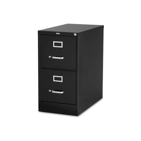 Lorell 2-drawer commercial-grade vertical file cabinet, 15"w x 22"d x 28"h, black commercial-grade file cabinet provides quality storage for your letter-size filing needs. Ball-bearing slide suspension provides maximum drawer extension and smooth drawer performance. High-side drawers are ready to accept hanging file folders. Vertical file also features two drawers, a core-removable lock and follower wire, and meets ansi/bifma industry standards. features lockable ball-bearing suspension