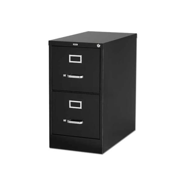 Lorell 2-drawer heavy duty vertical file cabinet, 15"w x 25"d x 28-3/8"h, black commercial-grade vertical file features two high-sided drawers that accommodate letter-size, hanging file folders without additional accessories. Three-piece slide suspension allows maximum drawer extension. Steel ball-bearings provide smooth, quiet drawer performance. Vertical file also features a core removable lock, adjustable wire followers, and heavy-duty steel construction. Vertical file meets or exceeds ansi/bifma industry standards. features security lock ball-bearing suspension heavy duty