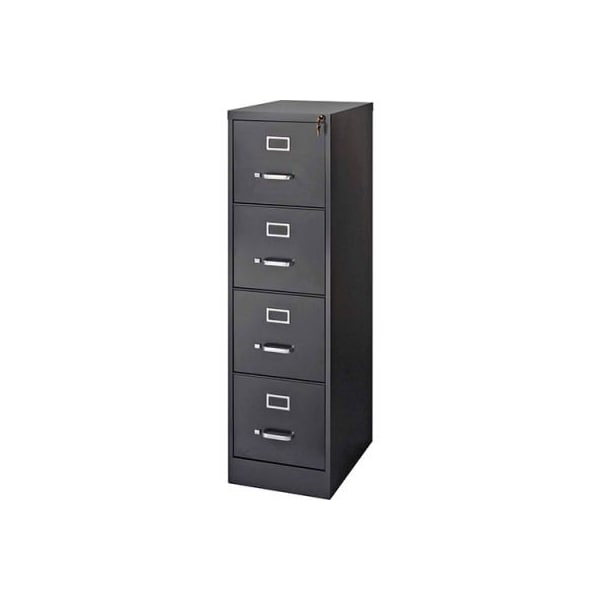 Lorell 4-drawer commercial-grade vertical file cabinet, 15"w x 22"d x 52"h, black commercial-grade file cabinet provides quality storage for your letter-size filing needs. Ball-bearing slide suspension provides maximum drawer extension and smooth drawer performance. High-side drawers are ready to accept hanging file folders. Vertical file also features four drawers, a core-removable lock and follower wire, and meets ansi/bifma industry standards. features lockable ball-bearing suspension