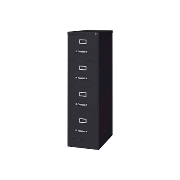 Lorell 4-drawer heavy duty vertical file cabinet, 15"w x 25"d x 52"h, black commercial-grade vertical file features four high-sided drawers that accommodate letter-size, hanging file folders without additional accessories. Three-piece, slide suspension allows maximum drawer extension. Steel ball-bearings provide smooth, quiet drawer performance. Vertical file also features a core removable lock, adjustable wire followers and heavy-duty steel construction. Vertical file meets or exceeds ansi/bifma industry standards. features security lock ball-bearing suspension heavy duty