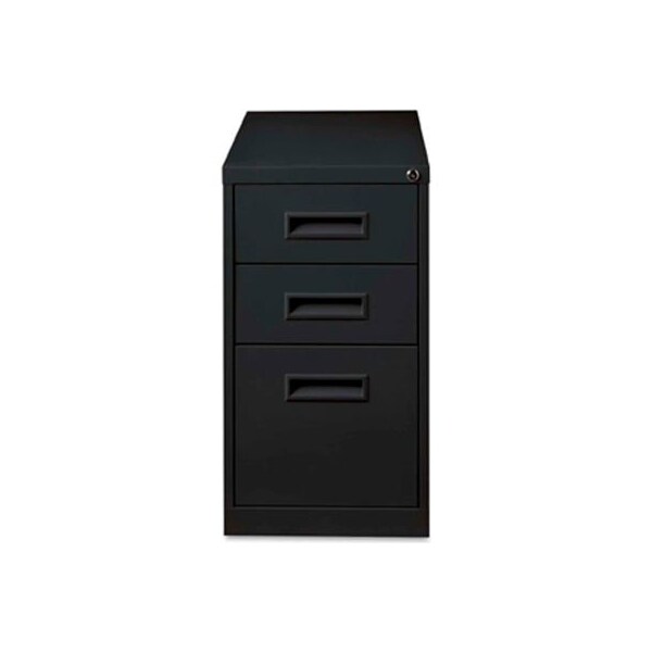 Lorell box/box/file mobile pedestal file, 15"w x 19"d x 28"h, black mobile pedestal offers a box/box/file drawer configuration for plenty of space for filing and supplies. Factory-installed, core-removable lock secures all drawers. Steel ball-bearing, drawer suspension delivers smooth drawer access to the file drawer. File drawer accommodates letter-size hanging folders with tabs. Drawer fronts have color-matched, recessed handles. Casters are hidden from view and move the pedestal easily when necessary. Pedestal is made of steel and offers a 19" depth to slide easily into your cubicle or other office configuration. Mobile pedestal file meets or exceeds applicable ansi/bifma standards.