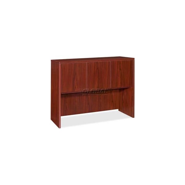 Lorell 69000 series hutch with doors, 48"w x 17"d x 36"h, mahogany hutch with three doors is part of lorell 69000 series laminate furniture with high-quality laminate construction and metal-to-metal cam-lock connections. Hutch easily attaches onto 72" wide credenzas and desk shells in this collection. Design includes one grommet for easy cord management, backing, mahogany laminate surfaces for durability and 3mm pvc edges. features grommet & cord management view the essentials collection here.