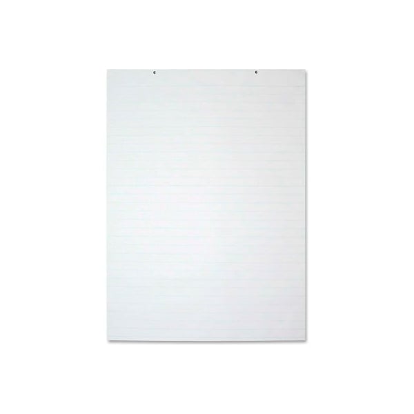 chart tablet contains 70 sheets of white bond paper that is 1" ruled the short way on both sides. Sheets are two-hole punched and bound at the top with glue. Tablet is recyclable.