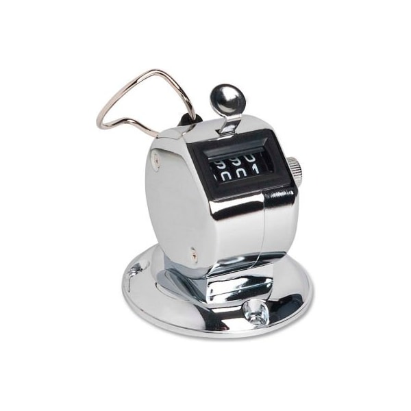 tally counter with base offers a four-figure register, a finger ring to hold it comfortably and an automatic reset button. White numbers are easy to see on a black background. Nickel-plated, precision-engineered tally counter is easy to remove from its base with a phillips head screwdriver.