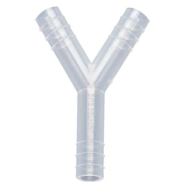 Barbed Wye, Specific Fitting Shape Wye, Application Gases, Liquids, Barb Style Standard, Fitting Material Polypropylene, Fitting Side A Connection Type Barbed, Fitting Side A Tube Inner Diameter 3/8 in, Fitting Side B Connection Type Barbed, Fitting Side B Tube Inner Diameter 3/8 in, Fitting Side C Connection Type Barbed, Fitting Side C Tube Inner Diameter 3/8 in, Fitting Side D Tube Inner Diameter 19/50 in, Overall Length 1 5/8 in, Maximum Operating Temperature 135 Degrees F