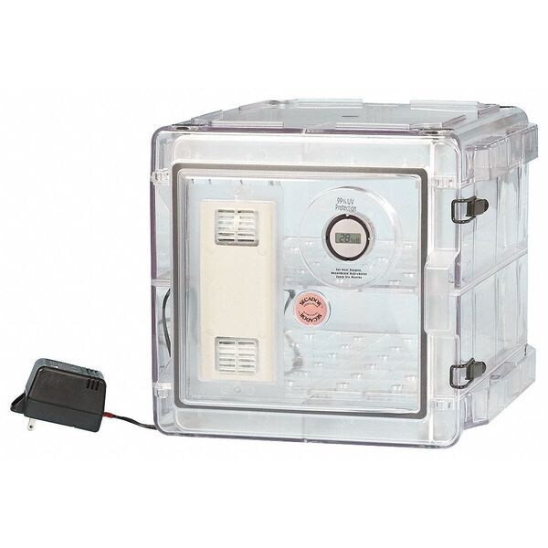 Autodesiccator, Overall Height 12.4 in, Overall Length 13.4 in, Overall Width 16.3 in, Number of Shelves (2) Fixed, Lab Desiccator Material Co-Polyester, Color Clear, For Use With 120V, Fully Automatic, Verticle Profile